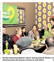 Der Bundesvorsitzende der GRÜNEN, Cem Özdemir, war leider krankheitsbedingt nicht in der Lage, seinen Termin in Peine wahrzunehmen. Ganz kurzfristig erfolgte die Absage, nach dem Cem sogar eine Veranstaltung abbrechen mußte. Dieser Ausfall ist sehr bedauerlich, wir bemühen uns um einen neuen Termin. Monika Berkhan, Direktkandidatin der GRÜNEN im Kreis Peine lud angereiste Gäste zum Smalltalk ein.