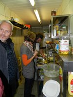 Erstmals lud der Kreisverband der Grünen zu einer Kochaktion „Teller statt Tonne“ ein. Mehr als ein Dutzend Aktive trafen sich im Nebenraum von Georgs Insel mit selbst geerntetem oder im Bioladen gekauftem Gemüse. Nach Bestandsaufnahme des vielseitigen Angebots wurde das Menü wie folgt komponiert und gemeinsam zubereitet: Kürbis-Mangold Suppe, Salat aus frischem Spinat, Möhren und Mairübchen an Balsamicodressing, Champignonpfanne, Tian aus Kürbis und Mangold mit Käse, vegetarischem Quiche, gedünsteten Gemüse. Ein Applecrumble zum Dessert mit Walnüssen aus dem Garten von Stefanie Weigand war besonders lecker.