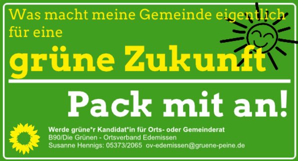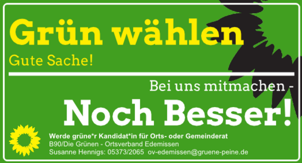 Der Ortsverband Edemissen BÜNDNIS 90/ Die GRÜNEN lädt ein zu