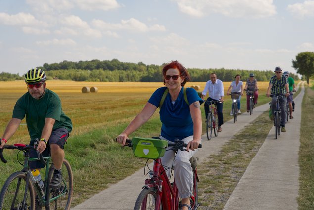 Der Ortsverband Peine von Bündnis 90/Die Grünen hat unter dem Motto "Natur erleben" eine Radtour durchgeführt. Die ca. 20 km lange Strecke führte vom Hagenmarkt nach Westen durch den Herzberg bis zum Wendesser Moor, auf dem Rückweg ging es über Eixe und Vöhrum ein längeres Stück auf schmalen Wegen durchs Naturschutzgebiet. Jörg Köther aus Schmedenstedt hatte die Route ausgearbeitet und gab gemeinsam mit Elke Kentner, der Fraktionsvorsitzenden im Peiner Stadtrat, an mehreren Punkten an der Strecke interessante Informationen.