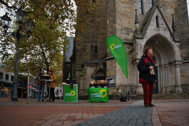 Mit großer Sympathie wurde ein Flyer des OV Peine von Bündnis 90/Die Grünen von den Bürgerinnen und Bürgern in der Stadt Peine entgegengenommen. Darin bedankten sich die acht gewählten Peiner Stadtrats-, Ortsrats- und Kreistagsmitglieder für das entgegengebrachte Vertrauen bei der vergangenen Kommunalwahl. Außerdem erhielt jeder Passant noch einen Bio-Apfel geschenkt.